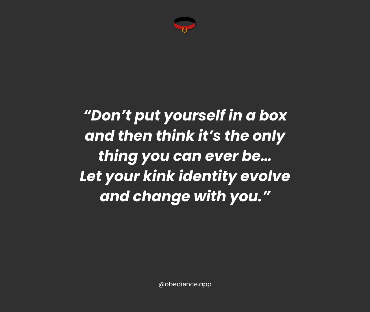 Drastic change happens, but most of the time the changes you go through with your kink identity will be more subtle. You may go from being a Dom to a sub, or a sub to a Dom-leaning switch, and all of that is okay. Your personal kinky journey is just that: Personal.